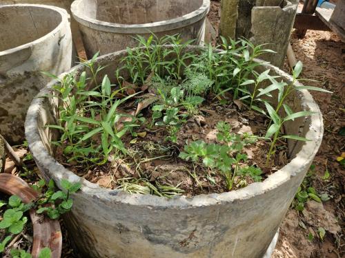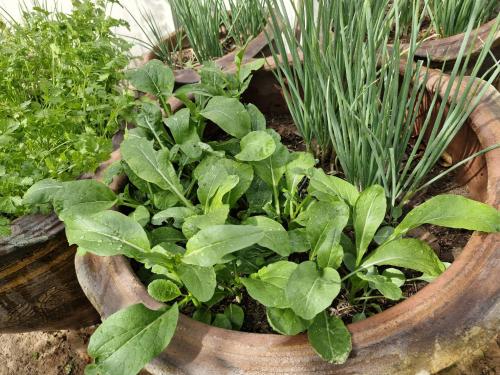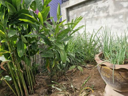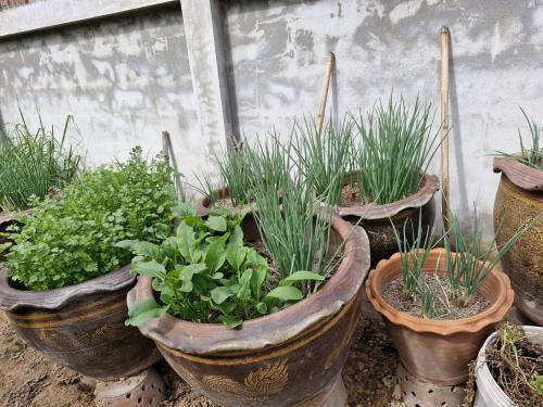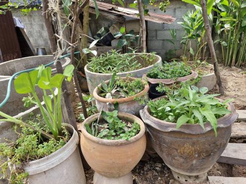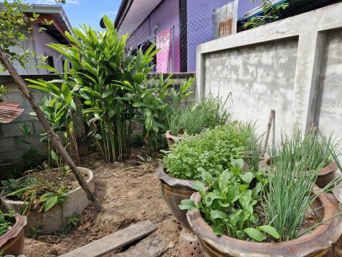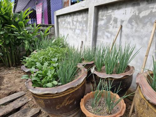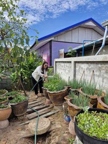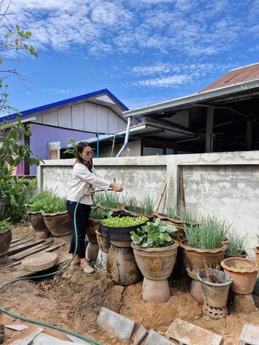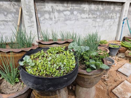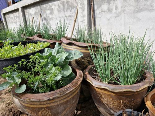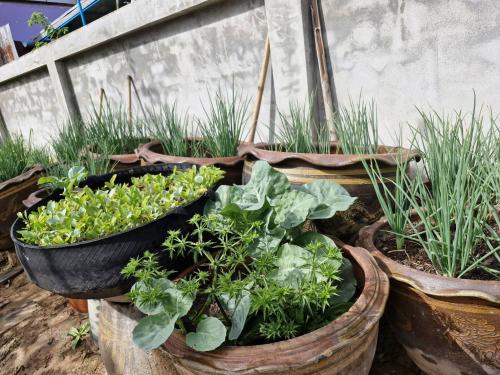 โดยได้ปลูกผักสวนครัว พืชสมุนไพร และไม้ผล กล้วย และมะละกอ บริเวณบ้าน เพื่อคุณภาพชีวิตที่ดี และมีความมั่นคงทางอาหาร