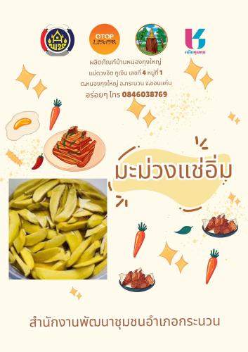 ขอเชิญทุกท่าน ชิมเมนูเด็ดในชุมชนท่องเที่ยว OTOP นวัตวิถี เมนูอาหารพื้นถิ่นของบ้านหนองกุงใหญ่ ม.1 ต.หนองกุงใหญ่ อ.กระนวน จ.ขอนแก่น ผ่านแอปพลิเคชั่น “Click ชุมชน”ค้นหาเส้นทางง่าย ๆ ได้ที่ CDD พาเที่ยว ในคลิกชุมชน เมนูมะม่วงแช่อิ่ม